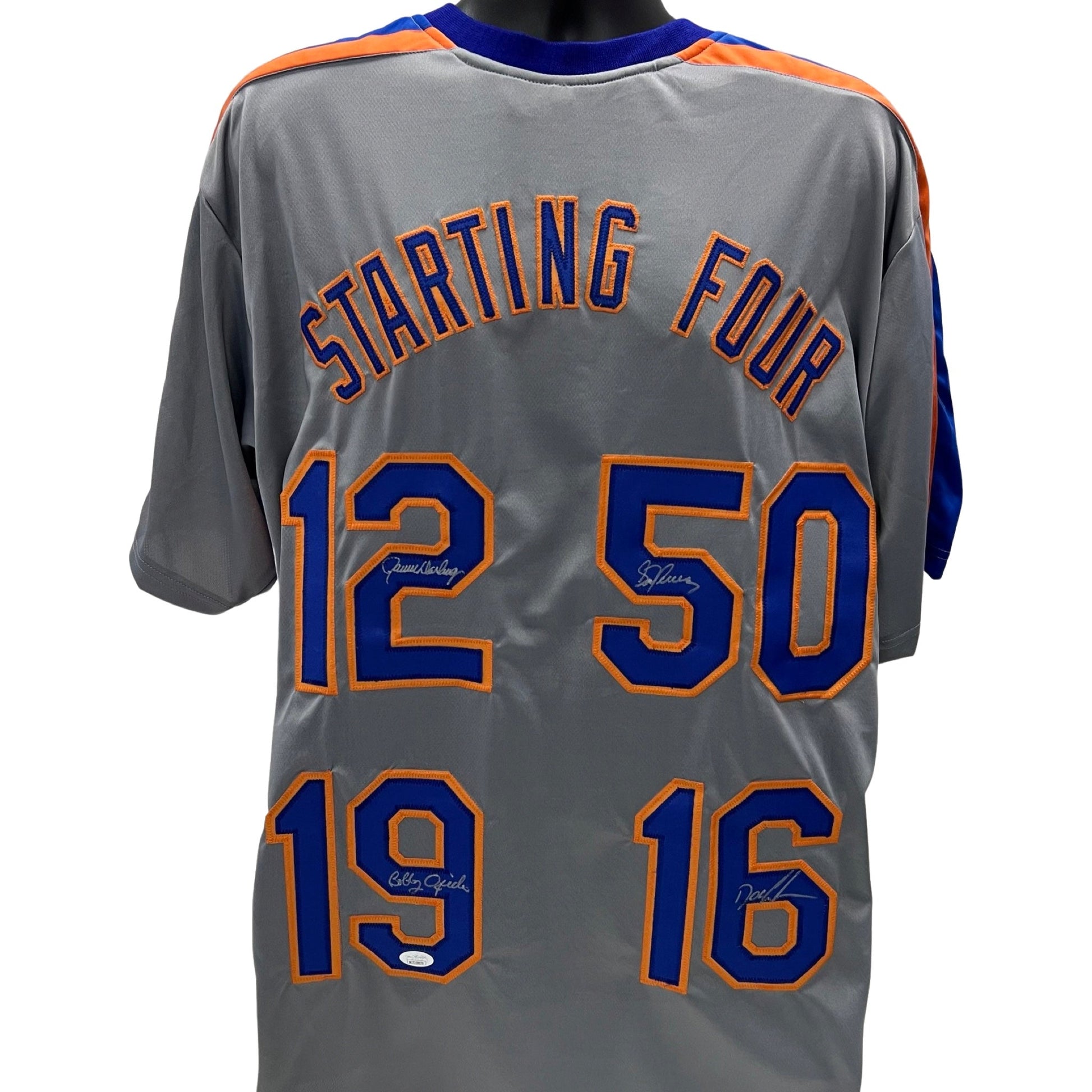 Doc Gooden, Bobby Ojeda, Ron Darling & Sid Fernandez Autographed New York Mets 1986 World Series Starting Four Grey Jersey JSA